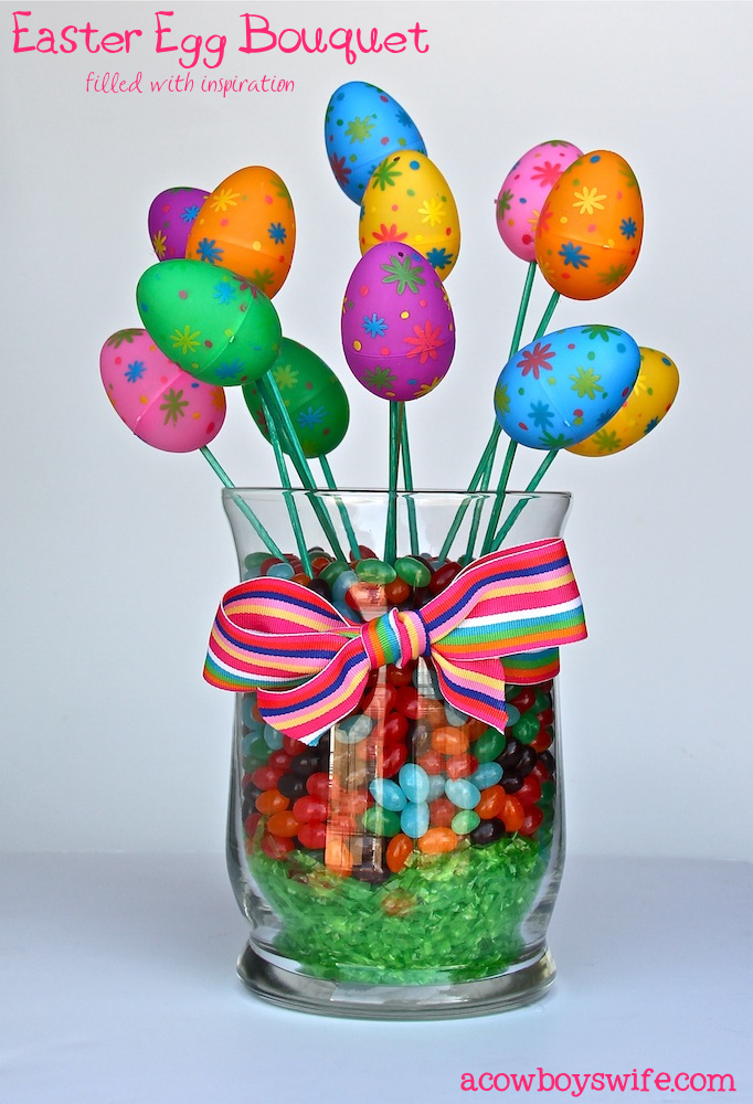 While I have many more to share, I’ll make this Easter Egg Bouquet in Candy-Filled Jar, my last one. You loved it. I loved it. Truett loved helping me put it together! A GREAT teacher gift during the Easter holidays.