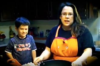 Since I’m on a new computer, the only photo I could find of me and Truett whipping something up in the kitchen is this one which is actually a video that I took a screenshot of.