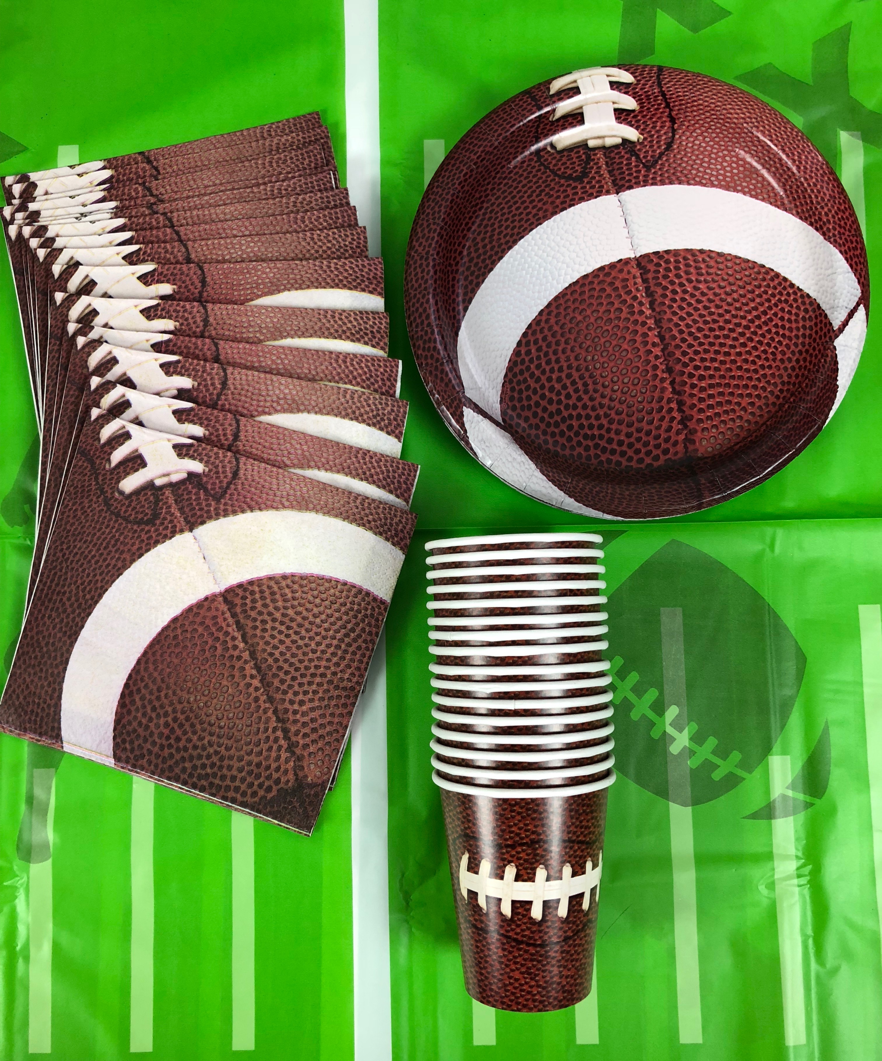 You also can’t tailgate without the essentials like cups, plates, napkins, and tablecloth! A setting isn’t complete unless there’s a theme and this football theme dinnerware is perfect for your next tailgate party.
