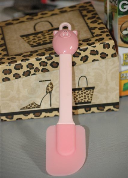 And then there’s the pig…the cute little pig that scrapes bowls and also makes me giggle because when you turn it around, there’s the cutest little curly pig tail on the back. I can’t help but to snort when using it. I couldn’t find this exact product but did find another pig kitchen tool. I think you can find other animals too. I have a couple of others I might share later on with ya.