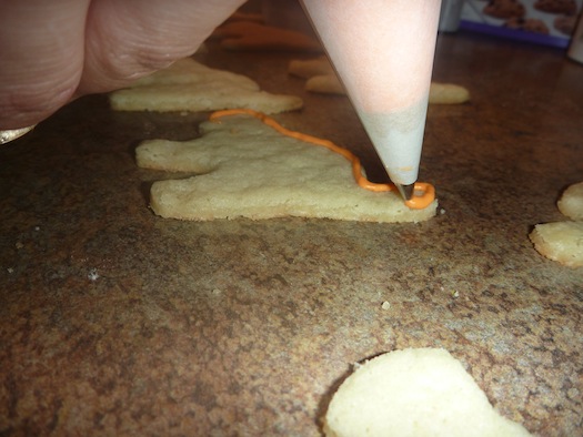 Because these were going to be black cats with orange outline, I made my orange icing first. I outlined each cat, using orange buttercream icing. I’m not actually even sure if using regular buttercream was the correct icing to use to be honest but that’s what I did.