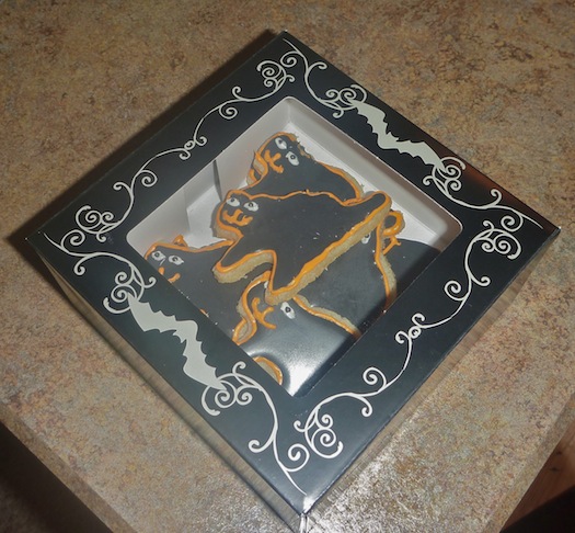 While I had hoped they’d look a little spookier, they’ll do. They actually look pretty happy. LOL I placed in a Wilton treat box and completed the Halloween Black Cat Cookies! If you want more Halloween treat ideas, check out some of my other posts.