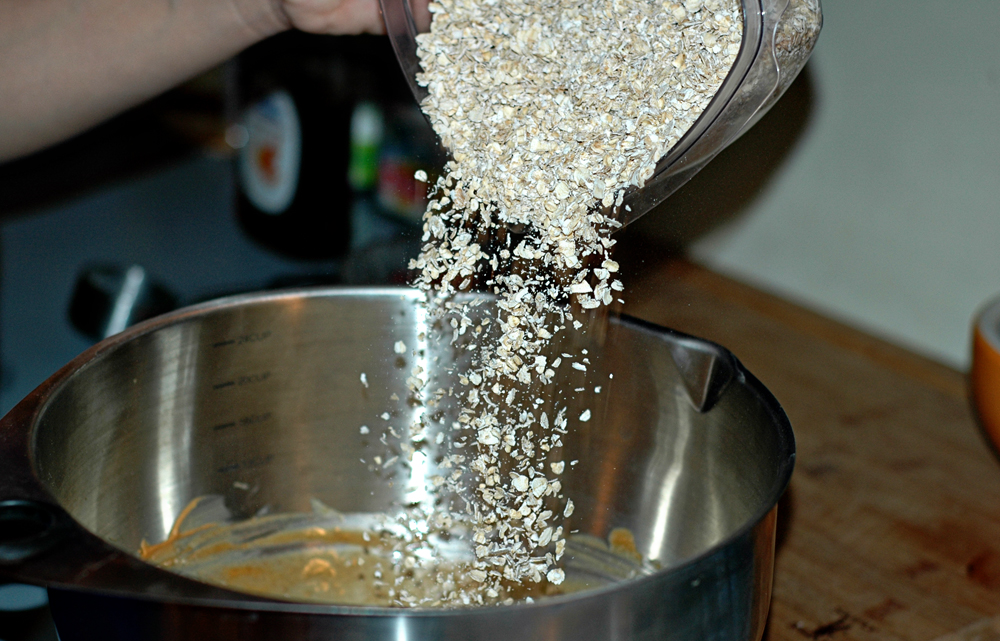 In my goal to be fit, not only am I working out to the Your Shape Wii Game, I’m also eating things healthier when I can. Trying to find healthy substitutions to replace the easy accessible junk food can prove to be difficult at times. I realized that trying to find prepackaged healthy food was the real problem. I needed to discover ways to create healthy snacks “from scratch”. So instead of buying granola bar type snacks, I decided to make my own version. Since granola seems to be an ingredients that’s hard to come by around here, I chose to use oatmeal as a substitute but you could use granola (and I recommend you do) to make this recipe.