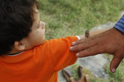 I love that my boy ain’t skeered of small crawly bugs! He just grabbed up this little caterpillar and let it crawl all over him. I didn’t even want it on me and he tried to put it on me. I just pretended I need to go pee. It was quite a show though really. I was intrigued at how long he played with the little fuzzy friend. Had I had one of those popcorn machines, I would have sit back, ate popcorn and watched him all evening but I had to cook supper of course. Can you believe that these boys of mine want to eat in the evenings….geez.