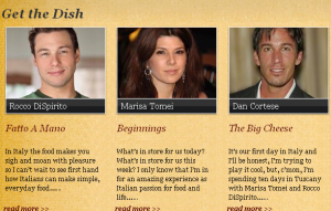 If you’ve been a reader of mine since 2008, then you’ll recall the time I hung out with Rocco Dispirito. It was glorious to watch him cook and charm us gals to no end. Since then, I’ve had several encounters with various celebrities including the lovely Paula Deen but this time around, I’m getting to spend some time with the beautiful & sweet Marisa Tomei, very funny Dan Cortese and Mr. Charming himself–Rocco.
