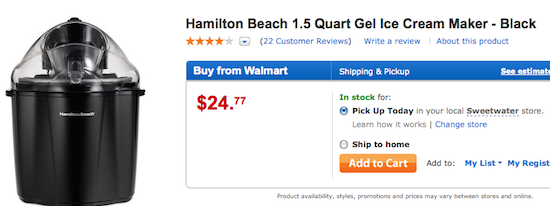 So I’ll just start with the big problem I had and that was finding something to buy online that I could pick up the same day. I think that our rural area proved difficult because it’s such a new service but was excited once I found the “Pick up Today” option on this ice cream maker.