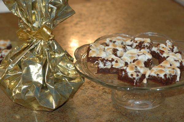 I like to find pretty bowls or plates, place brownies in them, and wrap them up as a gift. The receiver can use the dish over and over again instead of it getting thrown away, and the family can enjoy the brownies. Brownie pan was bought at my local Walmart.
