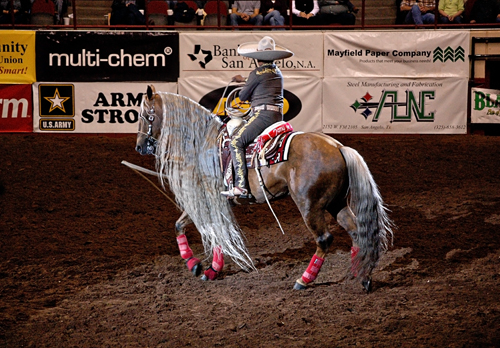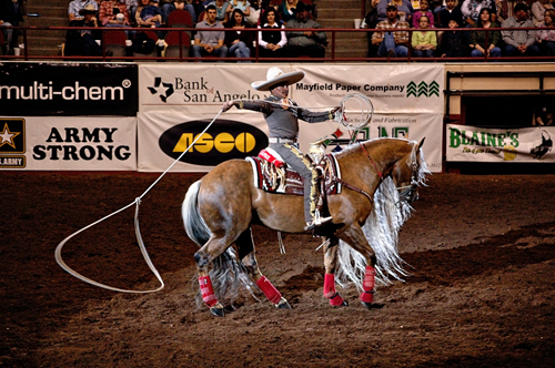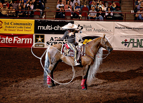 This Charro, Tomas Garcilazo, is an icon at the Wrangler Nationals Final Rodeo. He performs every single year and we enjoyed him a great deal. Not only is his horse absolutely beautiful, he’s very very talented. He ended the show by creating one HUGE loop with his rope while him and his horse were inside of it, loping around the arena. Pretty fabulous!