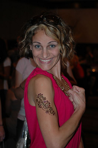 Here are a couple of pics from that event. The three princess fairys are The Bloggess, White Trash Mom, and Redneck Mommy. Below these girls is Christine who got a cool piece of artwork on her arm. The last photo is of some hot girls with Chris Mann.